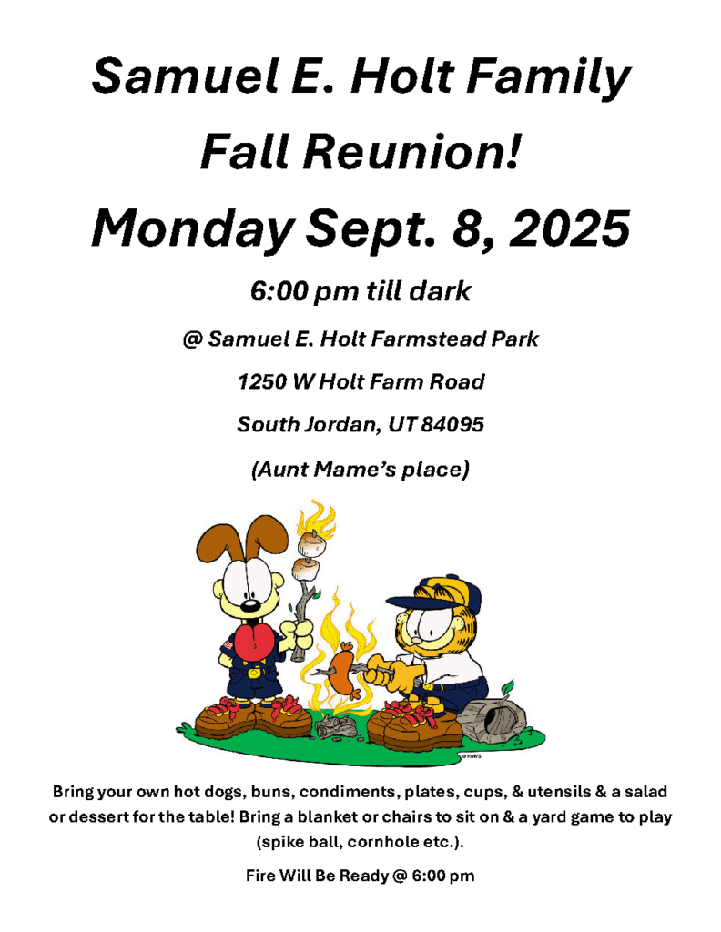 Where: The Holt Family Homestead is on Holt Farm Lane in South Jordan. The address is right off 1300 W and 10300 South. Here is a Google Map link: